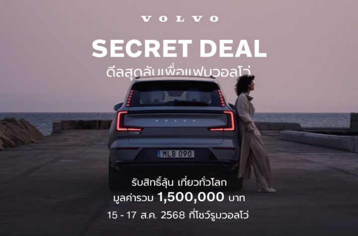 ดีลลับแห่งปี กลับมาแล้ว Volvo Secret Deal 2025 ระหว่าง 15-17 สิงหาคม นี้ ลุ้นทริปเที่ยวรอบโลกรวม 1,500,000 บาท พร้อมรับส่วนลดรถวอลโว่สูงสุด 1,100,000 บาท