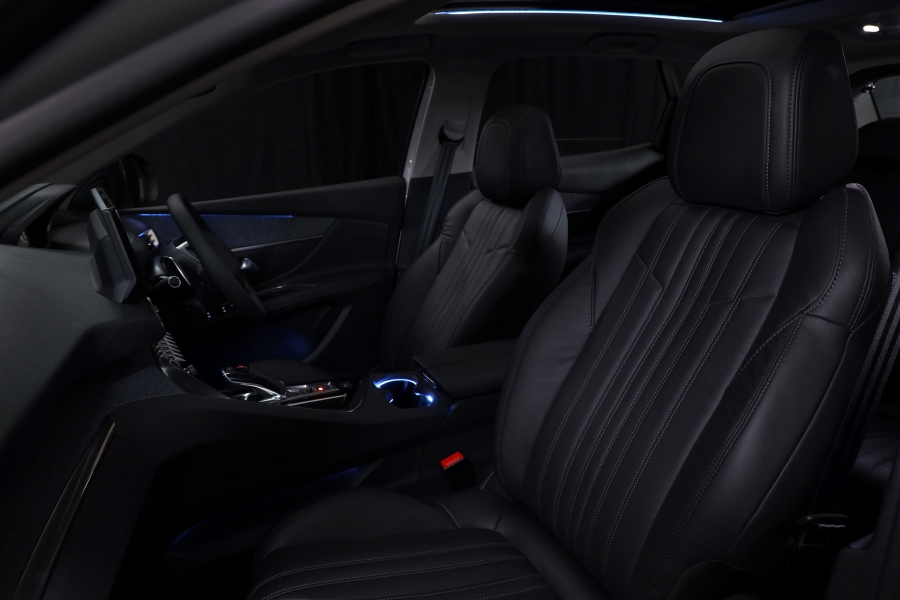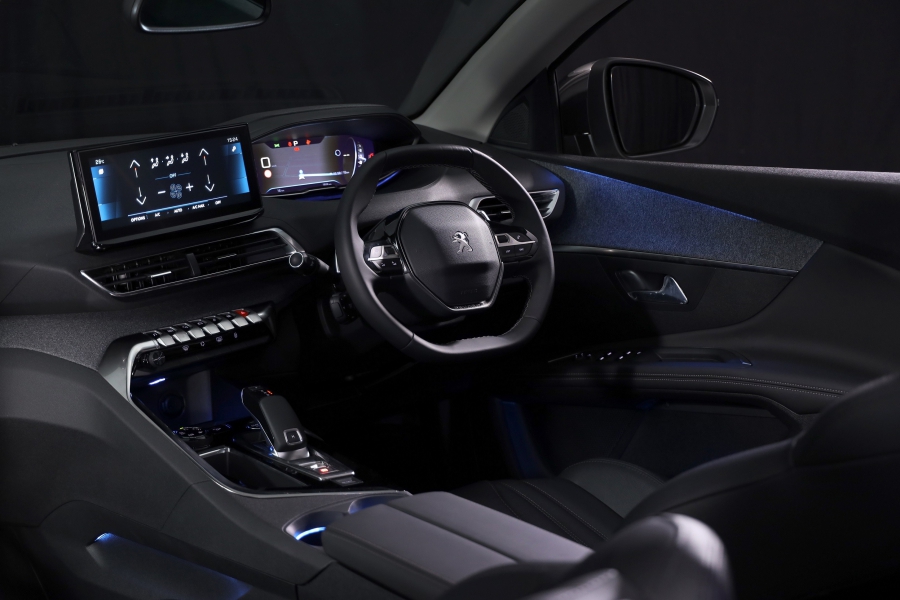 ห้องโดยสารของ 3008 เอสยูวี นับเป็นอีกไฮไลท์สำคัญ ต้อนรับผู้โดยสารอย่างอบอุ่นด้วยเบาะหนัง ตัดกันกับสีด้ายที่ใช้เย็บตะเข็บอย่างลงตัว ตกแต่งตามจุดต่างๆ ด้วยวัสดุผ้าคุณภาพสูง ให้สัมผัสนุ่มนวลและดูหรูหรา มาตรวัดดิจิทัลอเนกประสงค์ขนาด 12.3 นิ้ว ด้านหน้าผู้ขับ สามารถปรับการแสดงผลได้อิสระ พร้อมเพิ่มความละเอียดและความเข้มของจอ เพื่อความคมชัดสูงสุด ติดตั้งทัชสกรีนอเนกประสงค์ขนาด 10 นิ้ว บริเวณกลางแดชบอร์ด จอภาพความละเอียดสูง รองรับการสั่งงานด้วยเสียง ทั้งระบบนำทาง, โทรศัพท์, เครื่องปรับอากาศ และคลื่นวิทยุ มาพร้อม 7 สวิตช์แบบก้านเปียโน (Piano Key Toggle Switches) ที่ดูหรูหรา และช่วยให้สามารถปรับการทำงานของระบบต่างๆ ได้สะดวกรวดเร็ว พร้อมรองรับการชาร์จสมาร์ทโฟนแบบไร้สาย (wireless charging)