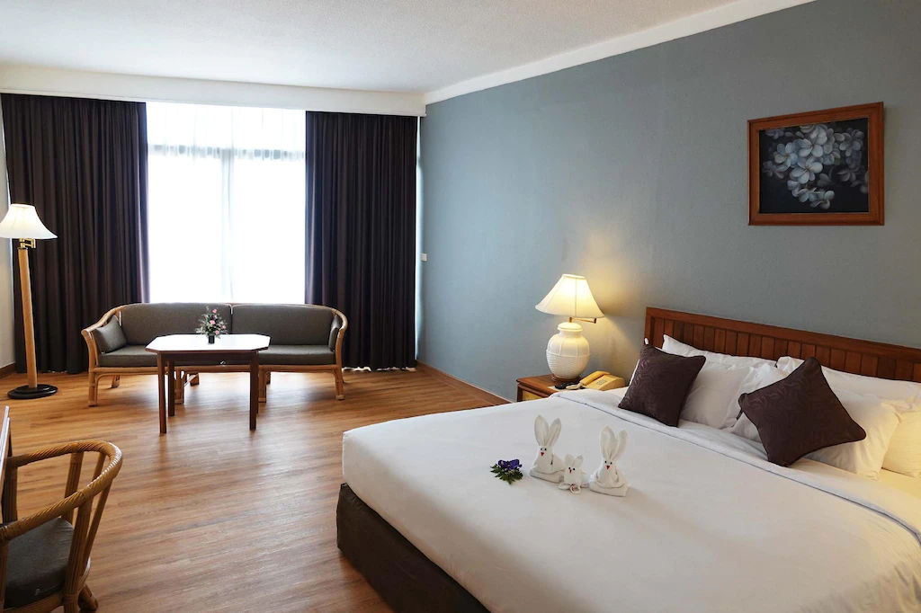 ห้องพักแบ่งสัดส่วน โดยมี เตียงคิงไซด์และแบบ2เตียง ให้เลือกและโซฟาขนาดย่อมเอาไว้นั่งทานข้าว ขนมและเครื่องดื่ม พร้อมอุปกรณ์อำนวยความสะดวกในห้องครบครัน ทั้ง LCD TV พร้อมข้อมูลของทางโรงแรมภายใน TV เค้าเตอร์บาร์ยาว สำหรับวางของเก้าอี้นั่งทำงาน ปลั๊กไฟ และอีกหนึ่งอุปกรณ์ที่น้าชอบที่สุดสำหรับการมาเที่ยวแบบนี้คือ
