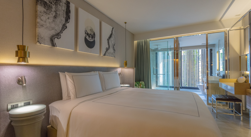 ห้องดีลักซ์โซนใหม่ ขนาด 30 ตารางเมตร โทนสีสว่าง ตกแต่งด้วยสีซิลเวอร์สไตล์โมเดิร์น และประดับภาพพิมพ์สุดอาร์ต