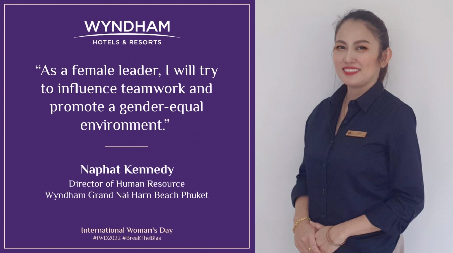 นางณภัทร เคเนดี้ ผู้อำนวยการฝ่ายทรัพยากรบุคคล ของโรงแรม “วินแดม แกรนด์ ในหาน บีช ภูเก็ต” ได้รับการคัดเลือกให้เป็นตัวแทนระดับภูมิภาคเอเชียแปซิฟิก ในฐานะผู้นำหญิงที่ตระหนักถึงบรรยากาศความเท่าเทียมทางเพศในที่ทำงาน จาก “Wyndham Hotels and Resorts Asia Pacific” เนื่องในโอกาสเฉลิมฉลองวันสตรีสากล ประจำปี 2565 โดยมีแนวคิดในการทำงานที่ยึดเป็นหลักในการบริหารทีมคือ ทุกคนต้องให้ความสำคัญของค่านิยมขององค์กร 5 ประการ คือ ความซื่อสัตย์ ความรับผิดชอบ ความครอบคลุม ความเอาใจใส่ และความสนุกสนาน ซึ่งเป็นหลักสำคัญที่ทำให้สามารถทำงานได้ตรงกับวิสัยทัศน์ของบริษัท และเคล็ดลับความเป็นผู้นำที่ดี คือ ผู้นำที่ดีจะตระหนักถึงหน้าที่ที่จะต้องนำทีมเดินไปในทิศทางที่ถูกต้อง ซึ่งเป็นความรับผิดชอบหลัก และผู้นำจะต้องมีวิสัยทัศน์ที่ชัดเจน สามารถสื่อสารวิสัยทัศน์ดังกล่าวให้แก่ทีมได้ ผู้นำจะต้องทำให้พนักงานตระหนักว่าทุกคนเป็นส่วนหนึ่งของทีม และเมื่อทุกคนตระหนักแล้ว ก็จะสามารถทำงานออกมาได้อย่างมีประสิทธิภาพ