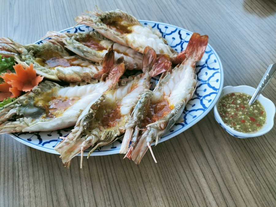 รวมถึง ซีฟู้ด อาหารซีฟู้ดสดๆ ที่มาแล้วต้องไม่พลาด คือ กุ้งเผา (ขนาด 6 ตัวโล)เพราะเป็นขนาดที่มีเนื้อกุ้งอร่อยกำลังดี ที่สำคัญทางร้านจัดโปรโมชั่นพิเศษ กุ้งแม่น้ำเผา 6-7 ตัวโล (ราคา 1,390 บาท) และกุ้งแม่น้ำทอดซอสมันกุ้ง 8-10 โล (ราคา พิเศษ 1,290 บาท) สามารถสั่งรับประทานที่ร้านหรือจะสั่งกลับบ้านก็ได้ ที่สำคัญยังมี เมนูพิเศษ 3 เมนู ให้เลือก 1 เมนู แถมอีกฟรี กินกุ้งอร่อยได้ โดยที่ไม่ต้องไปถึงสิงห์บุรี