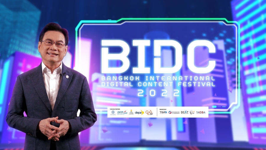 จัดพิธีเปิดอย่างเป็นทางการแล้ว สำหรับ “Bangkok International Digital Content Festival 2022” หรือ “BIDC 2022”เทศกาลดิจิทัลคอนเทนต์ที่ยิ่งใหญ่แห่งปี ที่จัดเป็นปีที่ 9 แล้ว โดย กรมส่งเสริมการค้าระหว่างประเทศ (DITP) กระทรวงพาณิชย์ ผนึกกำลังร่วมกับเหล่าพันธมิตรทั้งภาครัฐ ได้แก่ TCEB , depa และ CEA เสริมทัพด้วย 5 สมาคมดิจิทัลคอนเทนต์ไทย TGA , BASA , DCAT , e-LAT และ TACGA ปักธงผสานความร่วมมือในการผลักดันนโยบายซอฟต์พาวเวอร์ในประเทศในแข็งแกร่ง นำไปสู่การขยายไปยังต่างประเทศ ตามภารกิจ DITP ที่ช่วยส่งเสริมและพัฒนาศักยภาพผู้ประกอบการให้สามารถแข่งขันบนเวทีโลกได้ มั่นใจสามารถขับเคลื่อนตลาดคอนเทนต์ดิจิทัลในปีนี้ไม่ต่ำกว่า 500 ล้านบาท พร้อมจัดกิจกรรมประกาศรางวัล BIDC Awards รางวัลด้านดิจิทัลคอนเทนต์ 23 รางวัล โดยในปีนี้ถือเป็นการประเดิมการจัดงานในรูปแบบ Virtual Event เต็มรูปแบบเป็นครั้งแรกที่แปลกใหม่และแตกต่างไปจากในทุกๆ ครั้ง