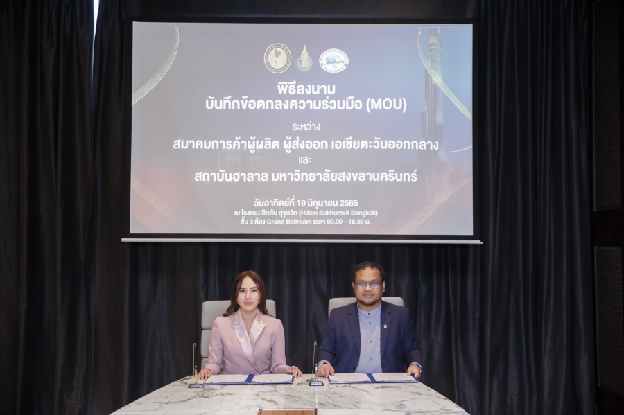 สมาคมการค้าผู้ผลิต ผู้ส่งออก เอเชีย-ตะวันออกกลาง จับมือ มหาวิทยาลัยสงขลานครินทร์ ทำ MOU ผลักดันผู้ประกอบการได้ใบฮาลาลถูกต้อง เพิ่มโอกาสส่งออกสินค้า เน้นอาหาร ผลไม้ เครื่องสำอาง ผลิตภัณฑ์สุขภาพ