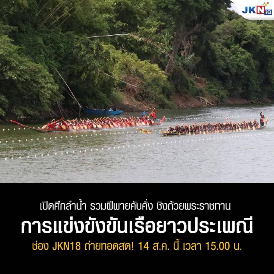 กลับมาอีกครั้งกับศึกดวลเดือดกลางแม่น้ำป่าสักกับ การแข่งขังขันเรือยาวประเพณีชิงถ้วยพระราชทาน สมเด็จพระกนิษฐาธิราชเจ้า กรมสมเด็จพระเทพรัตนราชสุดาฯ สยามบรมราชกุมารี ประจำปี 2565 ให้ผู้ชมทางบ้านได้ร่วมลุ้นและร่วมเชียร์ JKN 18 ยิงสดรอบชิงชนะเลิศจากริมแม่น้ำป่าสัก หน้าอำเภอเสาไห้ จังหวัดสระบุรี ชมพร้อมกันทั่วประเทศ ในวันอาทิตย์ที่ 14 ส.ค. นี้ เวลา 15.00 น.-17.00 น.