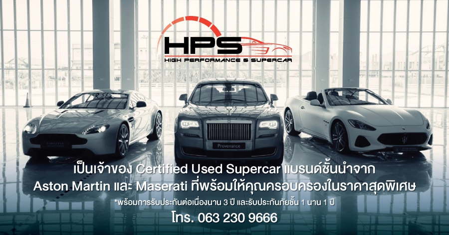 เอชพีเอส จัดหนัก ยกทัพยนตรกรรมสุดหรู และซูเปอร์คาร์ในเครือ มาให้ผู้ที่สนใจได้สัมผัสและจับจองในราคาสุดพิเศษ กับ 3 ยนตรกรรมไฮไลท์ คือ แอสตัน มาร์ติน แวนเทจ (AM6) ปี 2018 ราคา 14.12 ล้านบาท, มาเซราติ กรันคาบริโอ (GranCabrio) ปี 2017 รถสปอร์ตเปิดประทุนสัญชาติอิตาเลียน ราคา 10 ล้านบาท และ มาเซราติ ควอตโตรปอร์เต้ (Quattroporte) ปี 2016 รวมถึงรุ่นอื่นๆ อีกมาก โดยทุกคันมาพร้อมข้อเสนอสุดพิเศษ