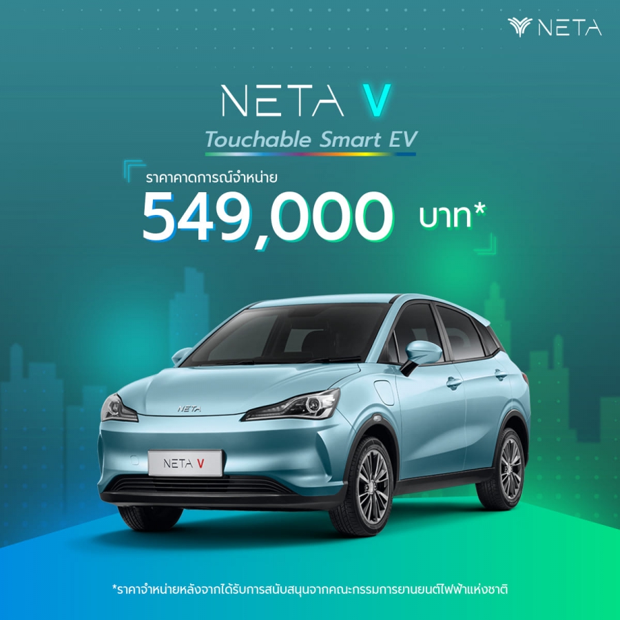 NETA V – Touchable Smart EV พร้อมแล้วที่จะให้คุณเป็นเจ้าของ ในราคาคาดการณ์จำหน่าย 549,000 บาท*
