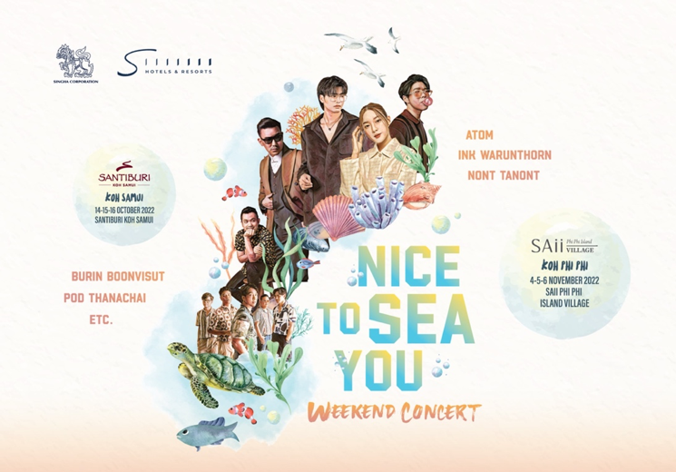 กรุงเทพฯ ประเทศไทย – เตรียมระเบิดความสนุกกับ 2 คอนเสิร์ตริมทะเลสุดชิลแห่งปี “Nice to Sea You Weekend Concert” โดย 6 ศิลปินไทยสุดฮอต บุรินทร์ บุญวิสุทธิ์ ป๊อด ธนชัย วง ETC อะตอม ชนกันต์ อิงค์ วรันธร และ นนท์ ธนนท์ ที่จะมาสร้างสีสันวันพักผ่อนให้ฟินกว่าที่เคย ณ รีสอร์ตยอดนิยม 2 สไตล์ สันติบุรี เกาะสมุย (Santiburi Koh Samui) และ ทราย พีพี ไอส์แลนด์ วิลเลจ (SAii Phi Phi Island Village) ในเดือนตุลาคมและพฤศจิกายนนี้