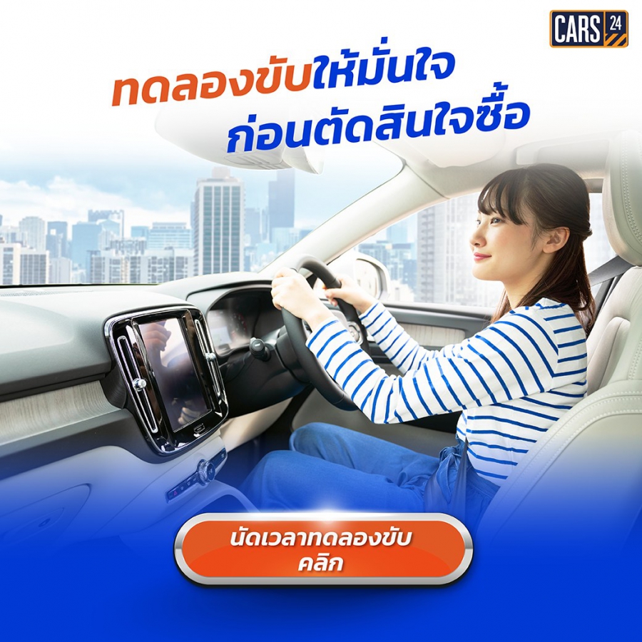 นอกจากนี้ยังสร้างความมั่นใจให้กับลูกค้าหลายต่อ เมื่อเลือกซื้อรถกับ CARS24 โดยต่อที่1 มั่นใจกับคุณภาพรถที่ได้รับการตรวจเช็กจากผู้เชี่ยวชาญกว่า 150 จุด ต่อที่ 2 เมื่อได้รับรถแล้วไม่ต้องกังวลใจ เพราะหากไม่พอใจ สามารถขอคืนเงินเต็มจำนวนได้ภายใน 7 วัน* และต่อที่ 3 มั่นใจว่าจะได้รับการดูแลหลังการขาย เพราะรถทุกคันรับประกันถึง 1 ปีหรือภายใน 30,000 กิโลเมตร อีกทั้งเรายังมีทีมมืออาชีพที่ให้บริการข้อมูลทางด้านไฟแนนซ์ ที่พร้อมช่วยดูแลแนะนำโปรโมชันที่เหมาะสมอย่างครบครัน จริงใจ พร้อมหารถที่ตรงใจและตรงงบประมาณตามที่ตั้งเป้าไว้มากที่สุด และสามารถนัดทดลองขับได้ ฟรี ไม่มีค่าใช้จ่ายแฝง หรือจะเข้าไปทดลองขับได้ที่ศูนย์บริการ CARS24 ทั้ง 3 สาขา ได้แก่ CARS24 ลาดกระบัง, CARS24 อโศก และสาขาใหม่ล่าสุด CARS24 กาญจนาภิเษก