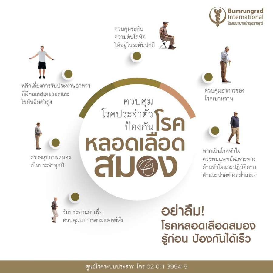 ทั้งนี้ แพทย์ผู้ชำนาญการเฉพาะทาง จาก โรงพยาบาลบำรุงราษฎร์ ได้แนะวิธีดูแลตัวเองเบื้องต้นเพื่อป้องกันโรคระบบประสาทและสมองว่า ควรออกกำลังกายสม่ำเสมอ ควบคุมน้ำหนัก หลีกเลี่ยงการรับประทานอาหารที่มีคอเลสเตอรอลและไขมันอิ่มตัวสูง ตรวจสุขภาพสมองเป็นประจำทุกปี และควรหมั่นสังเกตตนเอง หรือ คนในครอบครัวหากมีอาการเหล่านี้ เช่น มือ-เท้าชา แขน-ขาอ่อนแรง ตาพร่ามัว เวียนศีรษะ พูดไม่ได้ อาจเป็นสัญญาณของโรคระบบประสาทและสมอง ให้รีบมาพบแพทย์ทันที