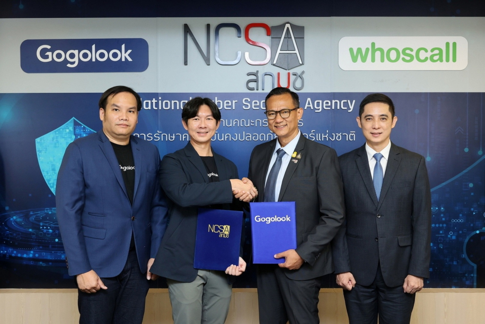 สำนักงานคณะกรรมการการรักษาความมั่นคงปลอดภัยไซเบอร์แห่งชาติ (สกมช.) ร่วมกับ บริษัท Gogolook (โกโกลุค) จำกัดผู้ให้บริการทางด้าน เทคโนโลยีเพื่อความเชื่อมั่น (TrustTech) และผู้พัฒนาแอปพลิเคชัน Whoscall ลงนามบันทึกความร่วมมือ ด้านการรักษาความมั่นคงปลอดภัยทางไซเบอร์ ยกระดับความปลอดภัยไซเบอร์เร่งต้านมิจฉาชีพออนไลน์ ให้คนไทยมีภูมิคุ้มกัน ไม่ตกเป็นเหยื่อ ณ ห้องประชุม Confidential ชั้น 7 สำนักงานคณะกรรมการการรักษาความมั่นคงปลอดภัยไซเบอร์แห่งชาติ