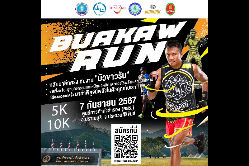 โดยกิจกรรม “Buakaw Run” จะเป็นการวิ่งที่แตกต่างจากการวิ่งมาราธอนทั่วไป เพราะจะเป็นการวิ่งพร้อมกับการทำกิจกรรม ที่ออกแบบมาเพื่อให้ผู้วิ่งได้สัมผัสบรรยากาศการวิ่งในค่ายทหาร ซึ่งเป็นเส้นทางวิ่งที่จะมอบประสบการณ์ใหม่ๆ จากการได้เรียนรู้ศิลปะแม่ไม้มวยไทย พร้อมกับการได้ผจญภัยในแต่ละฐานกิจกรรม ร่วมกับ บัวขาว บัญชาเมฆ ในระยะทาง 5 กิโลเมตร และ 10 กิโลเมตร