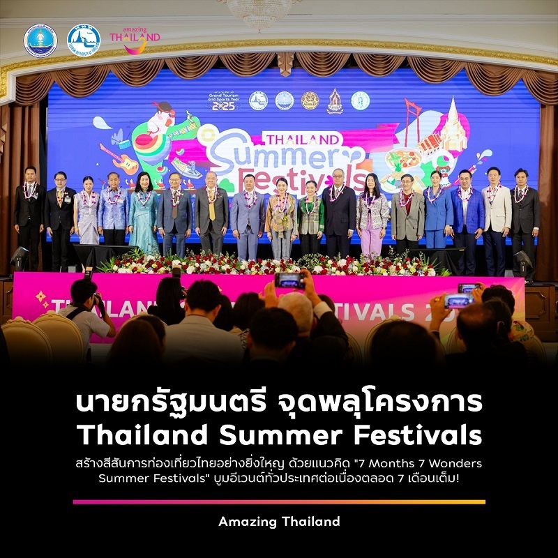 นางสาวแพทองธาร ชินวัตร นายกรัฐมนตรี เป็นประธานในพิธีเปิดเทศกาล Thailand Summer Festivals ณ ตึกสันติไมตรี ทำเนียบรัฐบาล โดยมี นายแพทย์พรหมินทร์ เลิศสุริย์เดช เลขาธิการนายกรัฐมนตรี นายสรวงศ์ เทียนทอง รัฐมนตรีว่าการกระทรวงการท่องเที่ยวและกีฬา นางสาวสุดาวรรณ หวังศุภกิจโกศล รัฐมนตรีว่าการกระทรวงวัฒนธรรม นายแพทย์สุรพงษ์ สืบวงศ์ลี รองประธานที่ปรึกษานโยบายของนายกรัฐมนตรีและประธานคณะกรรมการพัฒนาซอฟต์พาวเวอร์แห่งชาติ คณะรัฐมนตรี นางสาวนัทรียา ทวีวงศ์ ปลัดกระทรวงการท่องเที่ยวและกีฬา นางสาวฐาปนีย์ เกียรติไพบูลย์ ผู้ว่าการท่องเที่ยวแห่งประเทศไทย และคณะอนุกรรมการขับเคลื่อนอุตสาหกรรมทั้ง 14 สาขา เข้าร่วมงาน เสนอความมหัศจรรย์ของเมืองไทยภายใต้แนวคิด “7 Months 7 Wonders Summer Festivals” อัดแน่น Grand Festivities เทศกาลงานประเพณีใน 7 หมวดหมู่ ในพื้นที่เมืองน่าเที่ยว ได้แก่ เทศกาลสงกรานต์, เทศกาล Pride, เทศกาลทางวัฒนธรรม, ดนตรี, กีฬา, อาหาร และเทศกาลเชิงศิลปะและความสร้างสรรค์ หวังสร้างสีสันปลุกความคึกคักให้ท่องเที่ยวไทย ลดช่องว่างโลว์ซีซั่นให้ท่องเที่ยวได้อย่างต่อเนื่องตลอด 7 เดือน ระหว่างเดือนมีนาคม-กันยายนนี้