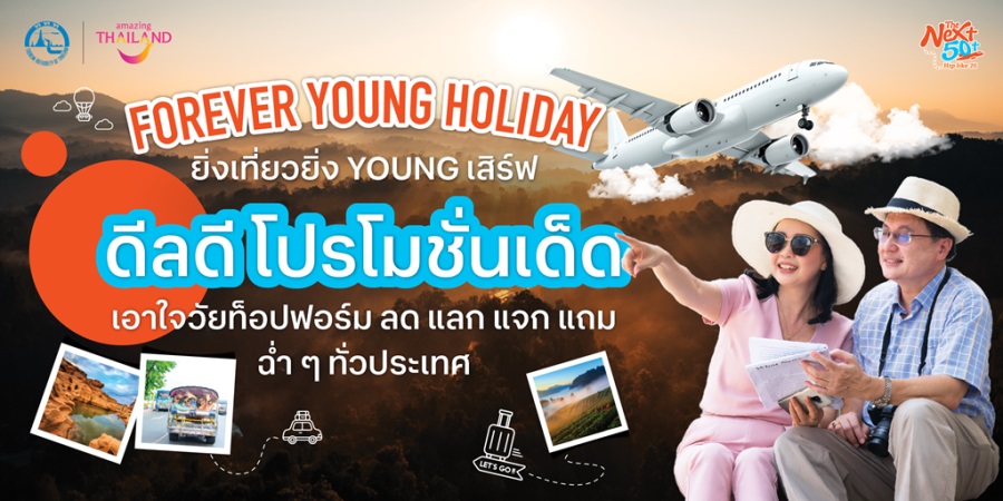 การท่องเที่ยวแห่งประเทศไทย (ททท.) เปิดตัวแคมเปญ “Forever Young Holiday – ยิ่งเที่ยวยิ่ง Young” เพื่อมอบสิทธิประโยชน์ที่คุ้มค่าและประสบการณ์การเดินทางสุดพิเศษ ให้กับกลุ่ม Active Silver Age ที่ถือว่าเป็นกลุ่มวัยที่ยังมีไฟ และมีความมั่นคงทางการเงินหรือเรียกว่าเป็นวัยท็อปฟอร์ม! ภายใต้คอนเซ็ปต์ The Next 50+ Hip Like 20 ชวนนักท่องเที่ยววัยท็อปฟอร์ม ที่มีพลังเต็มเปี่ยมไปด้วยความพร้อมในการสัมผัสประสบการณ์ใหม่ ๆ มีกำลังซื้อ มีมุมมองที่ทันสมัย และต้องการใช้การท่องเที่ยวเป็นรางวัลให้กับตัวเอง โดย ททท. จับมือกับพันธมิตรในอุตสาหกรรมท่องเที่ยว คัดสรร แพ็กเกจการเดินทาง ที่พัก โรงแรม เที่ยวบิน บริการรถเช่า เส้นทางท่องเที่ยวสุดเอ็กซ์คลูซีฟ และ ดีลพิเศษมากมาย ตอบโจทย์กับไลฟ์สไตล์ของนักเดินทางกลุ่มนี้ ไม่ว่าจะเป็น ที่พักโรงแรมเพื่อสุขภาพ, กิจกรรมเชิงวัฒนธรรม, ทริปธรรมชาติและผจญภัยเบา ๆ ไปจนถึงการเดินทางสุดคลาสสิกที่ชวนให้คิดถึงวันวาน พร้อมสินค้าท่องเที่ยวที่ออกแบบมาสำหรับกลุ่มนี้โดยเฉพาะ ที่ไม่ใช่แค่การเดินทาง แต่คือการ “สร้างแรงบันดาลใจใหม่ ๆ และเก็บเกี่ยวโมเมนต์ที่ใช่”
