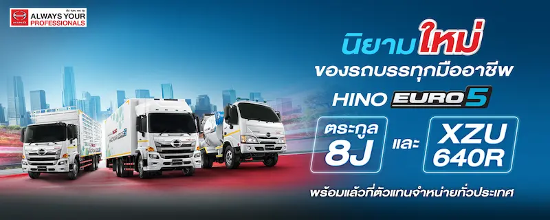 ฮีโน่พัฒนาอีกหนึ่งทางเลือกให้กับธุรกิจ จ่ายคุ้มค่าและได้รถบรรทุกคุ้มทุน กับรถบรรทุก HINO EURO 5 ตระกูล 8J มาพร้อมเครื่องยนต์ดีเซลเทอร์โบอินเตอร์คูลเลอร์ HINO J08E ให้กำลังสูงสุด 262 แรงม้า (6 ล้อ) และ 282 แรงม้า (10 ล้อ) พร้อมแรงบิดที่เหนือกว่า รองรับงานบรรทุกหนักและการใช้งานต่อเนื่องได้อย่างมั่นใจ เสริมด้วยระบบบำบัดไอเสีย SCR (Selective Catalytic Reduction) ลดมลพิษตามมาตรฐาน EURO 5 แต่ยังคงประสิทธิภาพเครื่องยนต์ และดูแลรักษาง่าย เพียงเติม AdBlue® โดยไม่ต้องเปลี่ยนอะไหล่สิ้นเปลืองอื่นๆ ในระยะยาว ซึ่งทำให้ต้นทุนต่อกิโลเมตรประหยัดกว่า EURO 3 รับจบทุกงานด้วยโครงสร้างแชสซีแข็งแรง ทนทาน และน้ำหนักเบา ช่วยเพิ่มปริมาณการบรรทุก ตอบโจทย์ธุรกิจโลจิสติกส์ยุคใหม่ที่ต้องการเพิ่มประสิทธิภาพและผลตอบแทนในแต่ละเที่ยววิ่ง พร้อมทางเลือกด้วยช่วงล่างแบบถุงลม (Air Suspension) ในรุ่นที่ติดตั้ง ซึ่งสามารถปรับระดับความสูงด้านหลังได้ ช่วยเพิ่มความสะดวกในการขนถ่ายสินค้า และรองรับสินค้าที่ต้องการความนุ่มนวลเป็นพิเศษ และแน่นอนด้วยเอกลักษณ์ความปลอดภัยที่เป็นมาตรฐานของฮีโน่ ทั้งโครงสร้างหัวเก๋ง EGS หรือระบบเบรก ABS ที่ติดตั้งเป็นมาตรฐานจากโรงงานช่วยให้ความมั่นใจในทุกการขับขี่ ครบ คุ้มแบบนี้ มีแต่ฮีโน่เท่านั้น